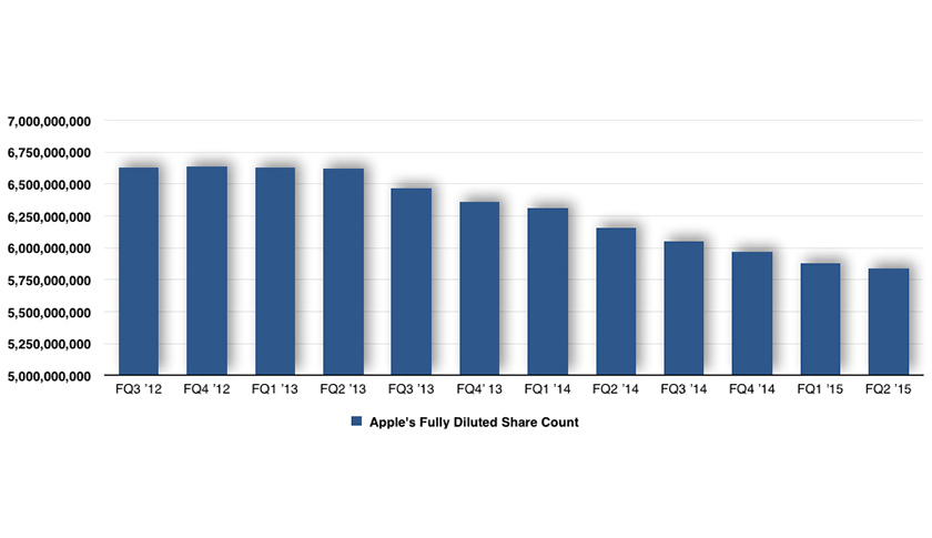 It shows what’s happened to Apple’s fully diluted share count over the past three years.
