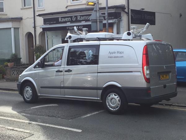 They look a lot like the experimental minivans Apple leased last year, but are painted gray and clearly labeled Apple Maps. They are believed to be gathering detailed data with cameras and lasers.