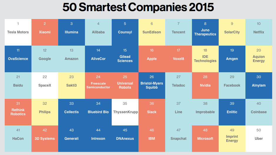 “We used to call it ‘most innovative,'” he explained. “But innovative is such an irritating word. Everything is an innovation. ‘Smart’ is more interesting. Smart better captures who is seeing the tech landscape as a whole and forcing everyone else to adapt to them.”