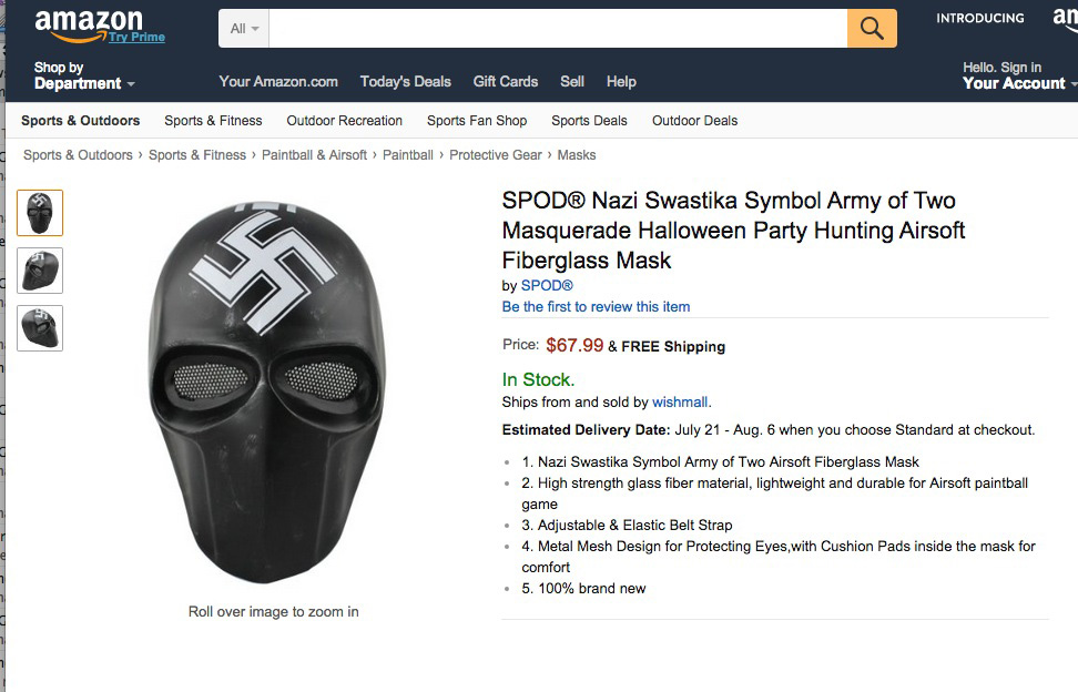 But if you want a German Nazi sword with swastika through Amazon or a German Flying Eagle neck knife with swastika through Sears, they’re still available.