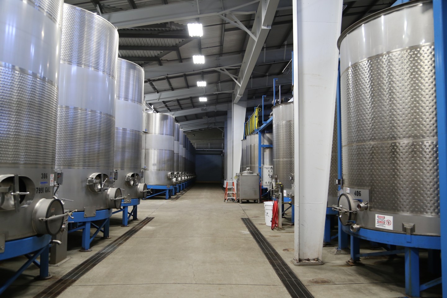 Inside the cellar at La Crema, the winery refrigerates and houses 8,000-gallon tanks that are filled with wine during certain months. A lot of water and energy goes to cleaning those so that they are ready for the next season.