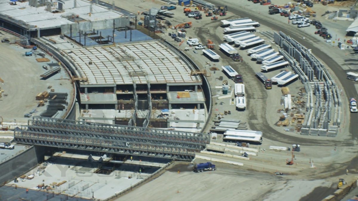 In the latest flyovers you can see that the finishing touches aren’t far away. The earth has been removed. The underground garage is mostly finished. The custom-made curved glass windows—shipped from Germany—are coming soon.
