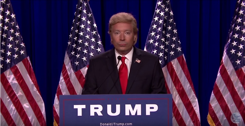 Fallon poked fun at Trump’s record of demeaning comments toward women, and his retroactive attempts to clean them up. Fallon opened with Trump’s latest comment, when he told CNN’s Don Lemon on Friday that there “was blood coming out of [Megyn Kelly’s] wherever” during the FOX Republican debate. Kelly had grilled Trump on his history of misogynist comments during the debate. The remark was widely condemned by liberals and conservatives alike as an unnecessary reference to menstruation (though Trump claims he was talking about Kelly’s nose.)