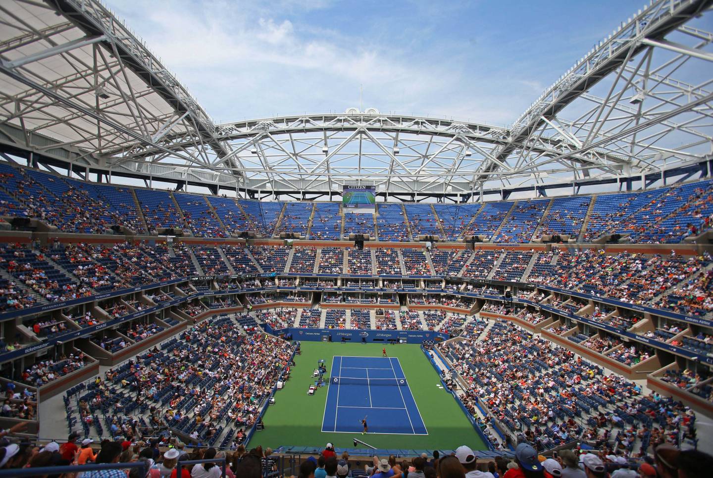 A general view of the new roof over Arthur Ashe Stadium during the match between Dominika Cibulkova of Slovakia and Ana Ivanovic of Serbia on day one of the 2015 U.S. Open tennis tournament at USTA Billie Jean King National Tennis Center. The U.S. Open has constructed a roof over Arthur Ashe Stadium, which is set to be complete for the 2016 tournament.