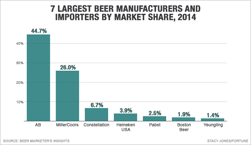 AB InBev rocked the beer world Wednesday when the brewer confirmed that it approached SABMiller’s board of directors to discuss a possible merger. Together the two companies are currently worth some $245 billion, and combined, they would control more than two-thirds of the $101.5 billion U.S. beer market, which is the largest in the world. But that doesn’t mean “Big Beer” is about to become “Mega Beer.”