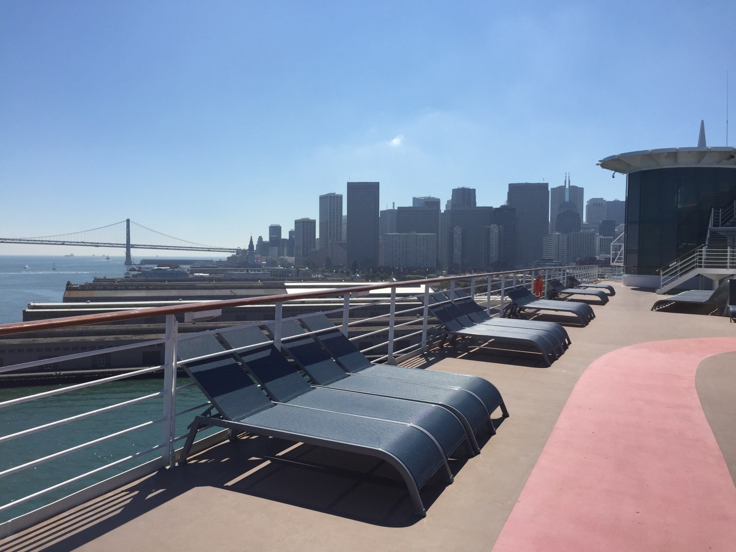 More than 1,100 conference attendees took rooms on the ship rather than at a hotel. From the deck, in every direction, visitors could see a famous San Francisco landmark like the Bay Bridge, the Golden Gate Bridge, the Transamerica Pyramid, Coit Tower, and Alcatraz Island.