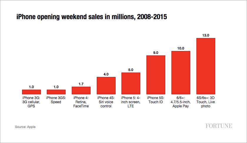 What Apple usually delivers instead, especially in the S models, are tentpole features customers didn’t ask for: Siri, FaceTime, Touch ID, iCloud, 3D Touch, Live Photos.