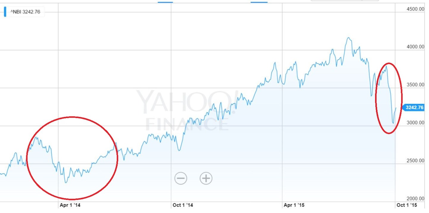 It’s not too dissimilar to what the public biotech market experienced in the late spring of 2014, following criticism over Gildead Sciences (GILD) pricing a 12-week treatment of its Sovaldi hepatitis C drug at $84,000. Just take a look at the NASDAQ Biotech Index for the past 18 months: