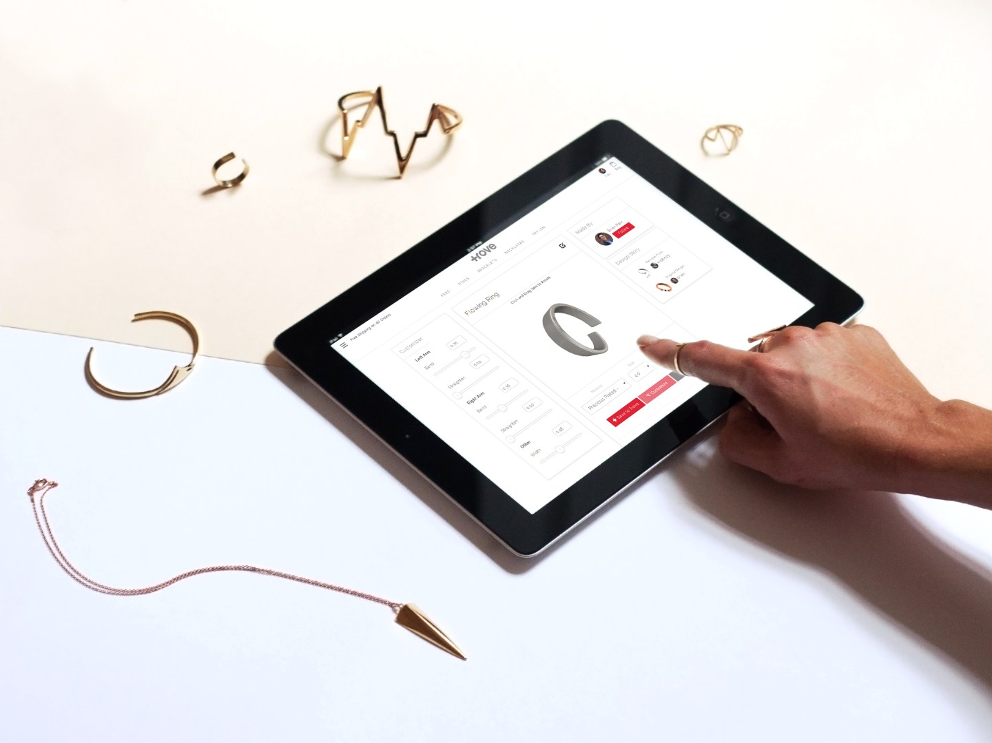 So far for Trove, jewelry has proved to be something customers are eager to customize. (Prior to launching Oct. 8, Park and his team tested out the platform for a few months.) Designs made on Trove’s platform stay in an online database, available for other customers to order as-is or further customize. An example of how it works: When a ring is being created on Trove, what customers see is a simple user interface that allows them to bend and straighten the left and right sides of the ring by moving a button on a slider shown on the left side of a screen—they’re not actually designing anything from scratch.
