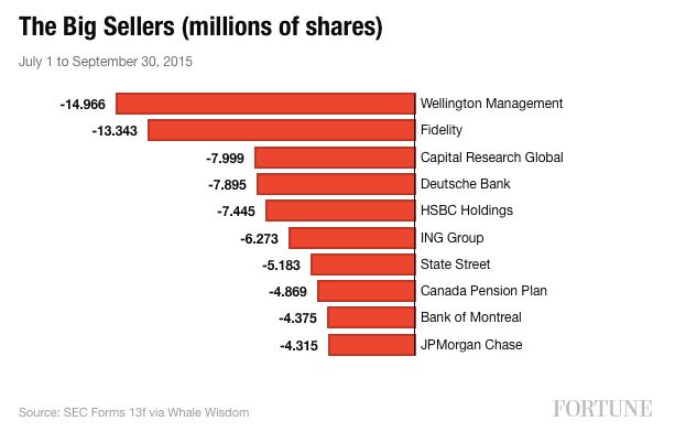 The biggest sellers were Wellington Management and Fidelity, both based in Boston, which together dumped a total of 28 million shares worth $3.1 billion.