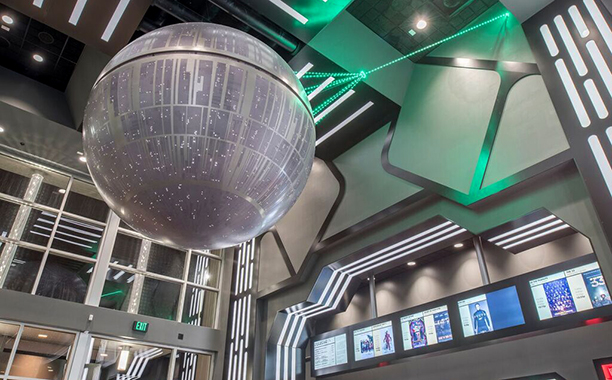 “The idea behind the lobby is that we wanted to construct and install a lobby theme that would make us unique in our Omaha market as well as the midwest,” said the Alamo’s Omaha team in a statement to EW. “We also wanted a theme that was built around an iconic film and to completely own that theme to immerse our guests in the experience. That is when Star Wars came into the picture and it just so happened that we timed it out just right with the announcement of the huge plans for a new Star Wars legacy starting this December. It is a permanent installation and will be thee destination to see all of the new Star Wars films.”