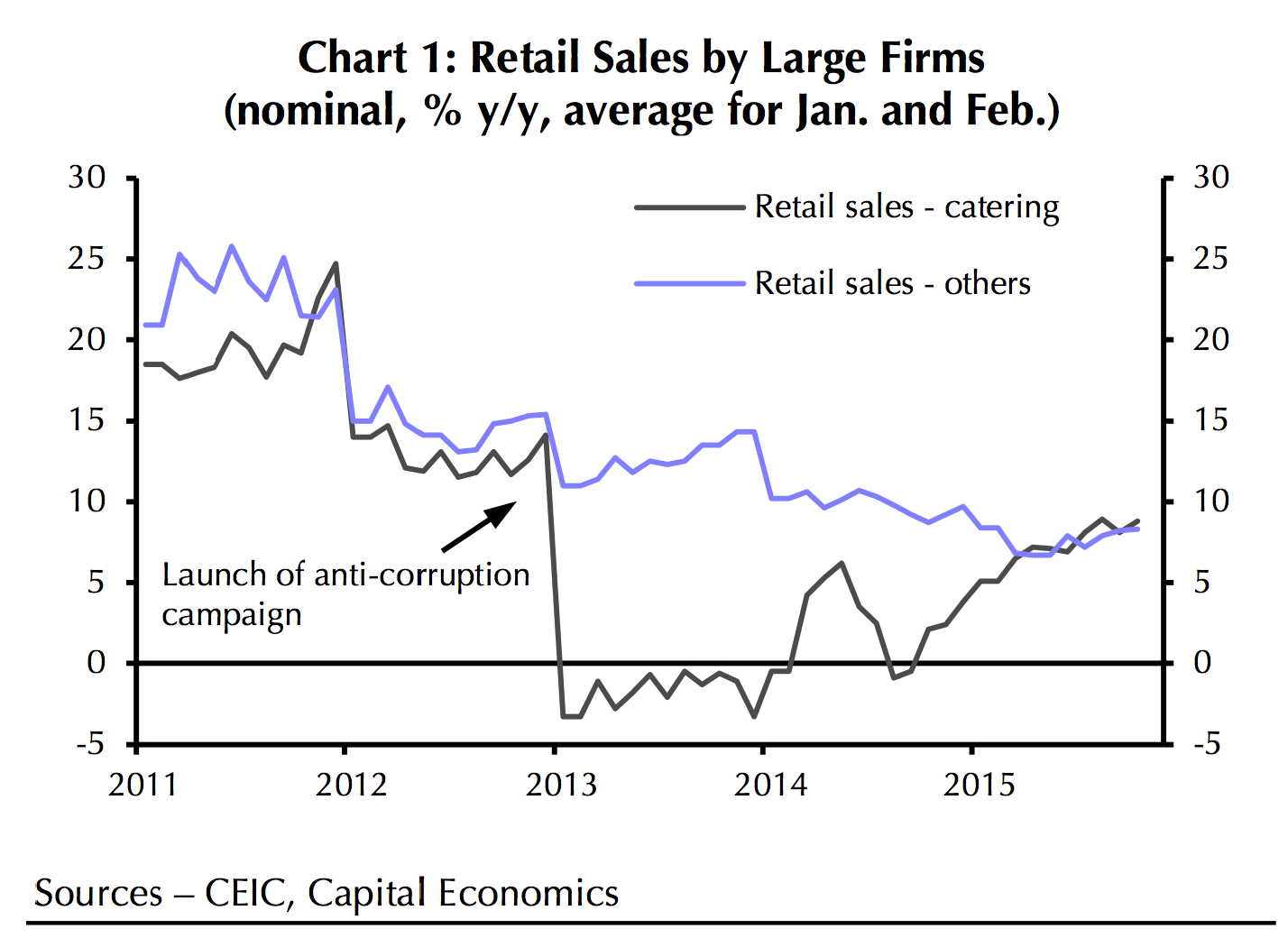 Capital Economics estimates the anti-corruption campaign, which has been linked to local officials sitting on project approvals for fear of the appearance of impropriety, reduced GDP growth in both 2013 and 2014 by one full percentage point.