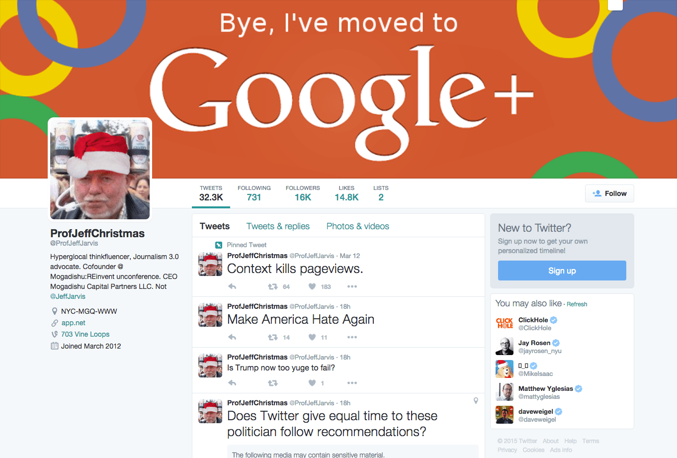 So who killed @ProfJeffJarvis? The real Jeff Jarvis never thought the account was funny, and on Tuesday he cheered its demise: