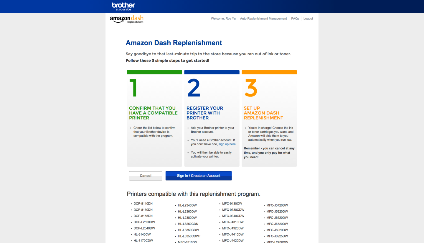 On Tuesday Amazon kicked the program up several notches. In addition to launching the first three products supporting Dash Replenishment Services (the Brother printers, the GE washer and the Gmate SMART blood glucose monitor for diabetics); it expanded the number of participants to Purell so hand sanitizers around the country could now ping Amazon to get more gel. The company also opened access for its Dash Replenishment Service to consumers.