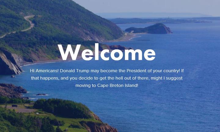 “Hi Americans! Donald Trump may become the President of your country! If that happens, and you decide to get the hell out of there, might I suggest moving to Cape Breton Island!” said the island’s tourism organization on its website.