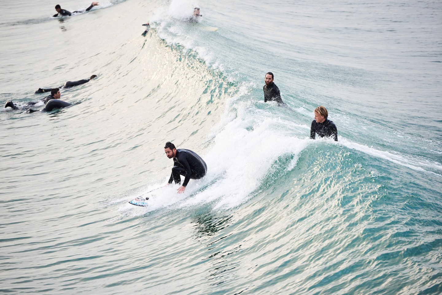 All prospective members serve a 30-day trial period, which, Lambert notes, “is not for the person to see if they like the group, but rather for the group to see how she or he fits.” Lambert receives about 10 to 15 applications a week. The form includes questions that are intended to weed out wannabe surfers: What is the length, brand, and model of your go-to surfboard? Where is your go-to surf break? The acceptance rate is about 30%. Lambert has ousted only three people: two for pitching up, and one for being the kind of aggressive “lone wolf” surfer who hogs all the waves.