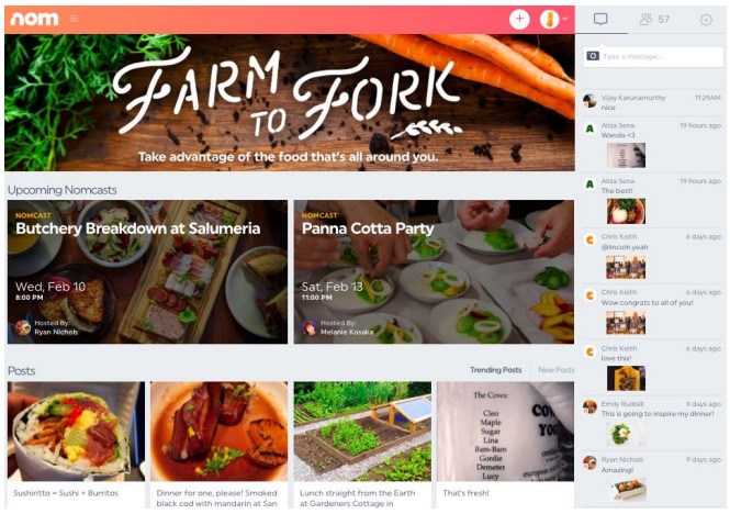 So far, the service has a few restaurant professionals in California demonstrating culinary skills or the creative side of running a restaurant. But Chen, who is also CTO at Nom, says he’s hoping to add streams about making coffee soon.