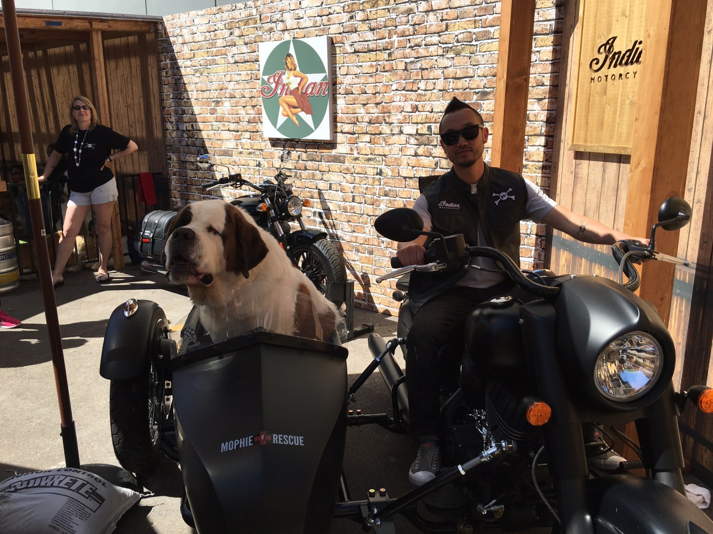 Your cell phone’s battery life takes a beating during SXSW. Mophie was on hand, though, sending out rescue dogs with chargers to help people who were running low on juice. And, because everything is done on a big scale here, they arrived in the sidecars of Indian Motorcycles.