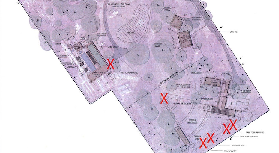 “According to planning documents filed… the new estate—on the more than 9 acres of land—would consist of a 3,706-square-foot main house plus a yoga studio (428 square feet), a sauna building (165 square feet), a hot tub, a plunge pool, a swimming pool, two guest houses (dubbed the “Orchard House” and the “Vineyard House,” 822 square feet and 1,250 square feet, respectively), a wine press building, an olive press building, a garden shed (1,063 square feet), and a “Garden Barn” (2,599 square feet).”