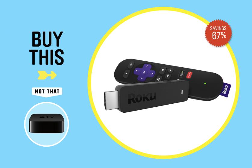 Apple’s fourth-generation TV box ($149) features built-in Siri and some cool games, but if Dad is all about the streaming video, go for Roku’s latest streaming stick ($50). It offers way more channels, convenient shortcut buttons on the remote, and a feature Mom will love: sound that can play through the headphone jack on Dad’s phone.