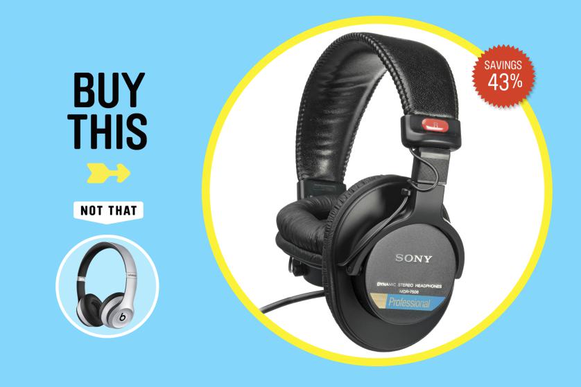 Sony's $80 over-the-ear headphones put up a good fight against the second (and much improved) iteration of entry-level Beats ($140). The MDRs produce great sound with a wider dynamic range, are sturdily built, and the pillow-like earpieces are insanely comfortable. Where Beats can't be beat: style and a removable cord with built-in playback controls.