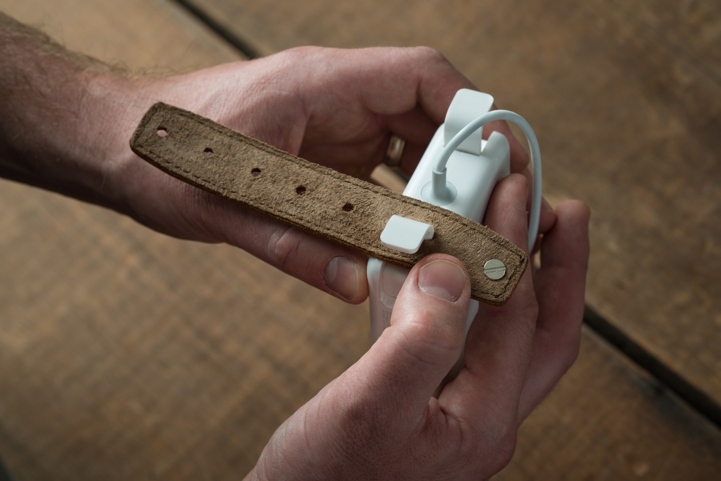Wrangling device chargers is a necessary part of travel that could mean unsightly velcro straps, rubber bands, or a tangled mess. Thus Saddleback Leather, a company that stakes its reputation on built-to-last leather goods and trades in heritage-styled bags, recently introduced this Cord Wrap Set ($29 for 3 sizes), adjustable leather and metal tabs looking like something granddad might have used in the old days if he had any portable wires to deal with other than transistor radio earphones.