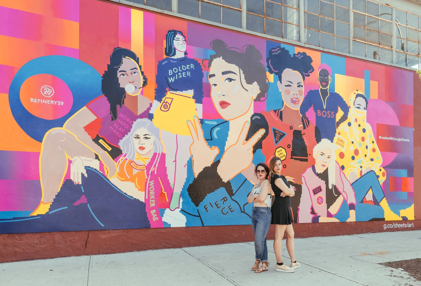 The company worked with lifestyle media company Refinery29 and artists on two continents to collaborate on an original mural. Marina Esmaraldo in Barcelona and Mallory Heyer in New York City were instructed to use Google Sheets rather than some graphical software package, like Adobe (ADBE) Illustrator, to co-create the design.