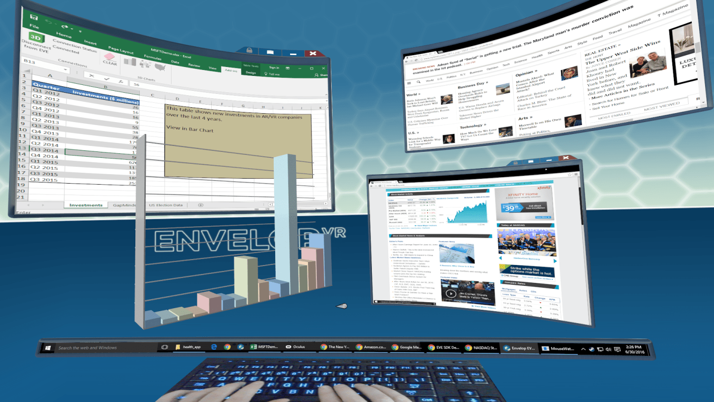 Envelop’s so-called “VR shell” does the heavy lifting that morphs the popular Windows into a VR-friendly format, according to Envelop CEO Bob Berry. It’s similar to Google’s (GOOG) recently released “VR shell” for a special developer version of its Chrome mobile browser that will make mobile websites display better in virtual reality through smartphone-powered headsets like the Samsung Gear VR.