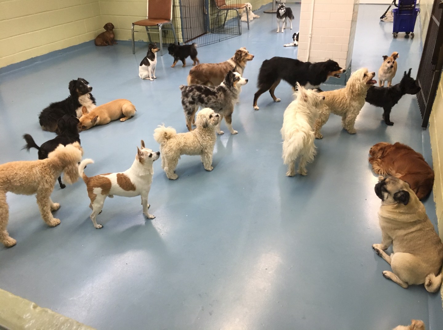 While it’s unclear whether the Chihuahua is enjoying himself — he looks resigned and a little drooly — he interacts with the other dogs once his owner is gone, sniffing a few rear ends and getting sniffed in return. Although small enough to be left in the apartment while she’s at work, he’s dropped off here once a week, so he can “socialize” with other dogs. For a dog his size, the privilege costs $31 for up to 4 hours, and $43 for the entire day.