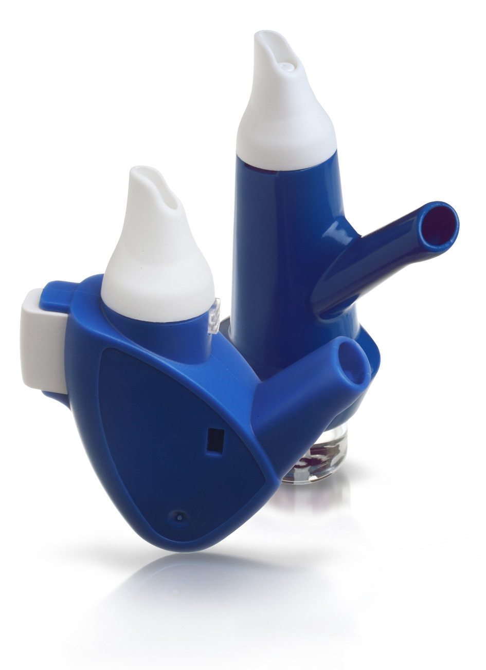 The product takes the concept behind a traditional inhaler and turns it into a two-pronged system, with one end going into a patient’s nose and the other into his or her mouth. Since the nasal cavity gets blocked off while you’re breathing out (thanks to the mechanisms of the soft palate), the device essentially delivers the medication higher up into a hostage nostril, increasing the amount that gets quickly absorbed (and thereby also reducing the required dosage).