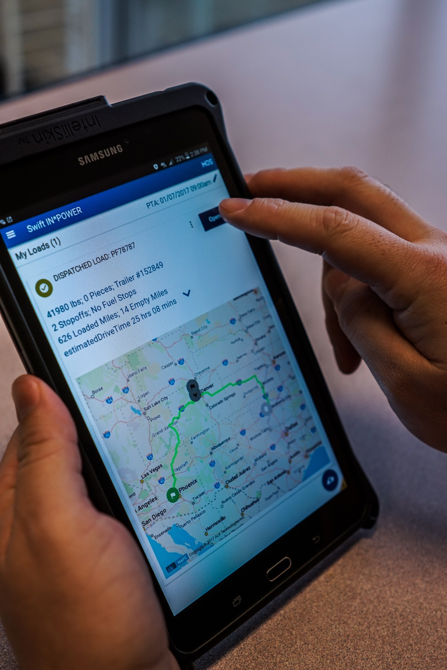 The idea is to provide drivers with a modern device—in this case, Samsung Galaxy Tab E tablets running Android. The ancient system being replaced involves a mobile gadget (running Windows XP) that is hardwired to the truck dashboard, which means it can’t be used for outside inspections, said Daniel Lilley, vice president of fleet innovations for Phoenix-based Swift.