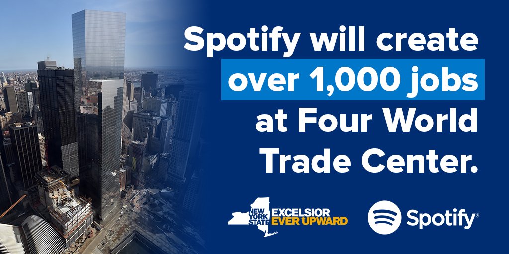 New York Governor Andrew Cuomo announced during a press conference on Wednesday streamed via Facebook Live (FB) as well as via a series of tweets (TWTR) that the digital music company is moving into Four World Trade Center. Spotify will soon be neighbors to other big brands in the building, such as the Lower Manhattan outpost of Chef Mario Batali’s Italian food emporium Eataly.