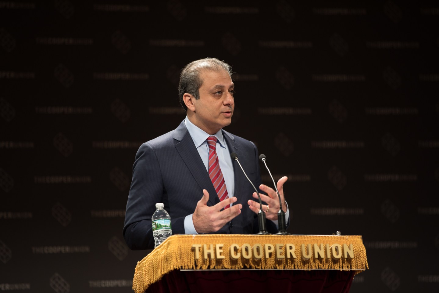 Despite the remark, much of Bharara’s talk sounded like an early version of a political stump speech. He several times invoked the history of the Cooper Union venue, which helped to launch the Presidency of Abraham Lincoln, and has hosted speeches by the likes of Barack Obama and Bill Clinton.