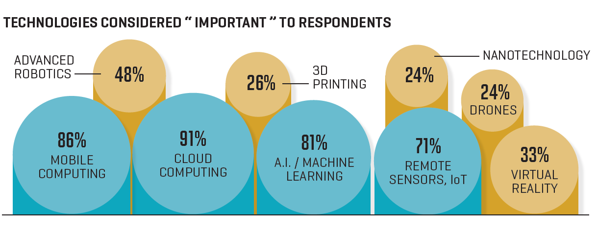 The chief executives of Fortune 500 companies are optimistic about the global economy, bullish on employment, big on prospects for the U.S., and braced for a torrent of technological change. The responses below come from a survey we sent to Fortune 500 CEOs last month.
