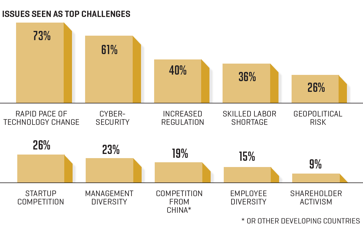 Percentages below represent the portion of CEOs who said the issue was either their single biggest challenge, or one of their top three or four challenges.