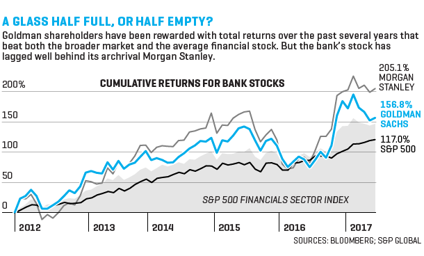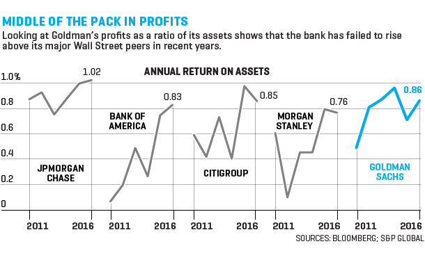 A version of this article appears in the June 15, 2017 issue of Fortune with the headline “Is Goldman Sachs Still No. 1 on Wall Street?”.