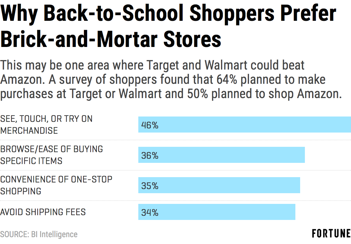 There’s a very analog solution, too: Back to school shopping is one area where brick and mortar stores tend to win out over e-commerce. A study from Business Insider shows people would rather see school supplies in person before buying.