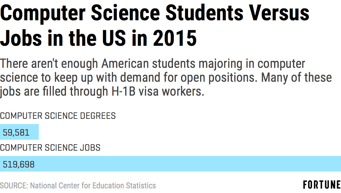 In 2015, there were nearly 10 times more computer science jobs than students graduating with computer science degrees.