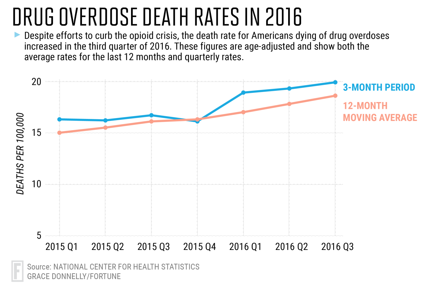 Indeed, Secretary of Health Tom Price confirmed that the White House would not declare a state of emergency at this time. The decision comes on the heels of a new report from the National Center for Health Statistics, an agency of the Centers For Disease Control and Prevention, that shows the rate of estimated drug overdose deaths increased in the third quarter of 2016 and outpaced the rate of drug-related deaths over the same period in 2015.