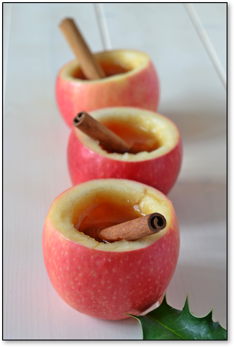 Add cinnamon sugar, 1 oz. Spiced rum, 3 oz. Apple Cider and 1 oz. Green Apple Vodka to a glass. Stir until sugar has melted. Top off with 3 oz. lemon Lime Seltzer. Served in hallowed out apples and garnish with cinnamon stick.