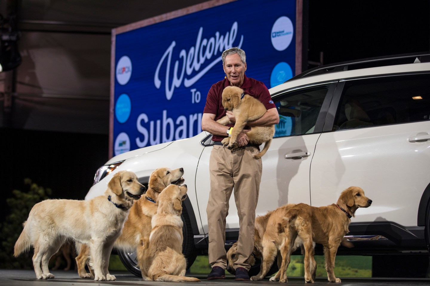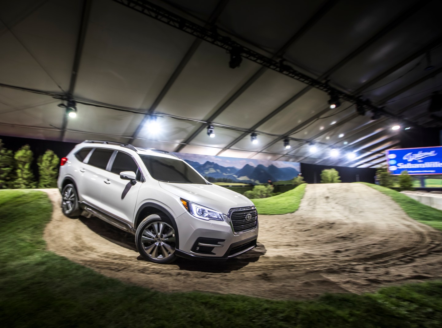 Subaru stayed true to its brand and its customer base Tuesday when it used a family of eight Labrador and Golden Retriever dogs to debut its three-row 2019 Ascent SUV. The vehicle will go on sale in summer 2018 and the base price will be in the “low $30,000s.”