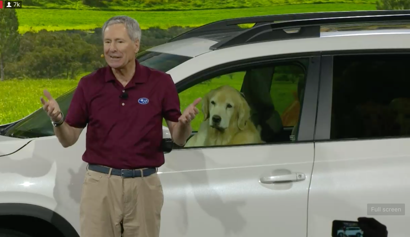 Subaru of America unveiled the new SUV at a press event ahead of the LA Auto Show that highlighted “The Barkleys,” the dogs featured in the company’s advertising campaigns. The dogs appeared to be driving. Seven of them then exited the vehicle and greeted Subaru of America president and chief operating officer Tom Doll. He then turned back to the SUV and grabbed out the “little guy,” a puppy.