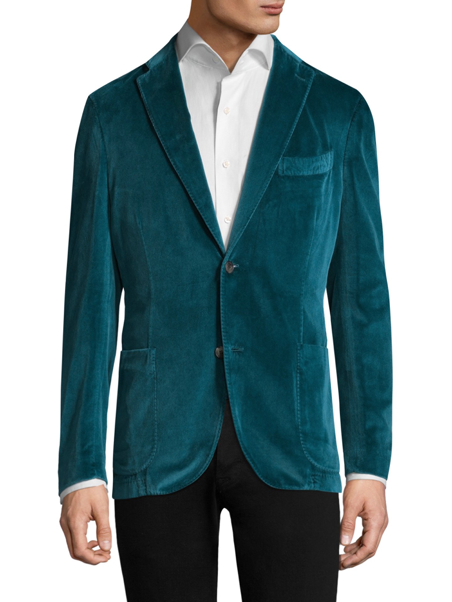 Patel, of Saks, recommends pairing a velvet blazer with jeans and a pair of velvet sneakers for a more casual, yet luxurious look. "There’s more flexibility as well if it’s not going to be tradition tux," she says. "Beautiful, rich jewel tones" are in this year, so don't hesitate to try something a bit off the beaten path—like teal.