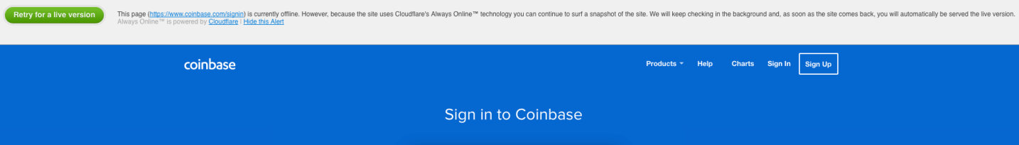 By 10 a.m. ET the Coinbase site was back online. The company has yet to issue a statement explaining the outage, though a person familiar with Coinbase told Fortune it was the result of large traffic and trading volume, and not malicious activity.