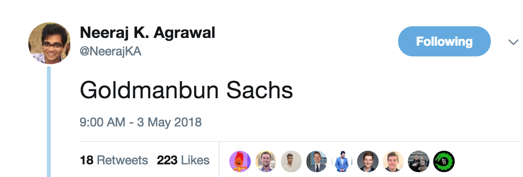 To the moon... Goldman Sachs finally confirms it will trade Bitcoin. A $1 billion ICO for...venture capital.Bacoin joins the home of the wiener. Coinbase could be worth $8 billion. Bitcoin futures trading is spiking to record heights. Peter Thiel backs another crypto startup. Bitcoin Foundation founder predicts this is the last chance to buy Bitcoin under $10,000. The answer to a $400 Jeopardy question: 'What is Bitcoin?' You can bet with Bitcoin, Bitcoin Cash and Litecoin at the Kentucky Derby this weekend