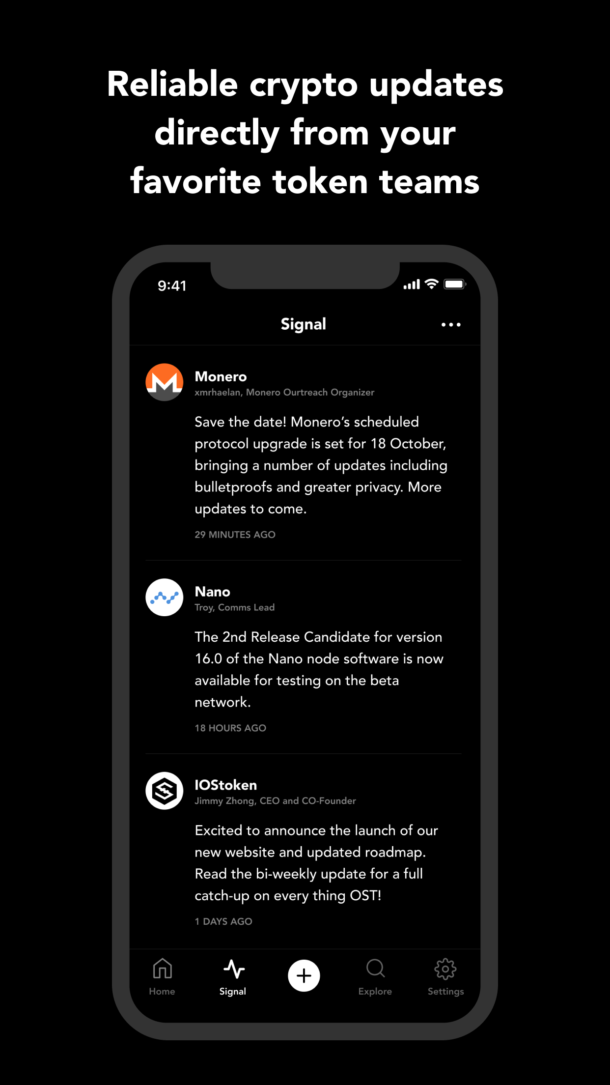 “If we were just a price-tracking application, we wouldn’t be able to raise that kind of money,” says Ed Moncada, Blockfolio’s cofounder and CEO. Moncada touts a new feature called “signal,” released in May, which lets the teams behind cryptocurrencies broadcast updates through a one-way channel via optional push notifications—a different setup than the infinite-scrolling feeds filled with all and sundry that predominate today.