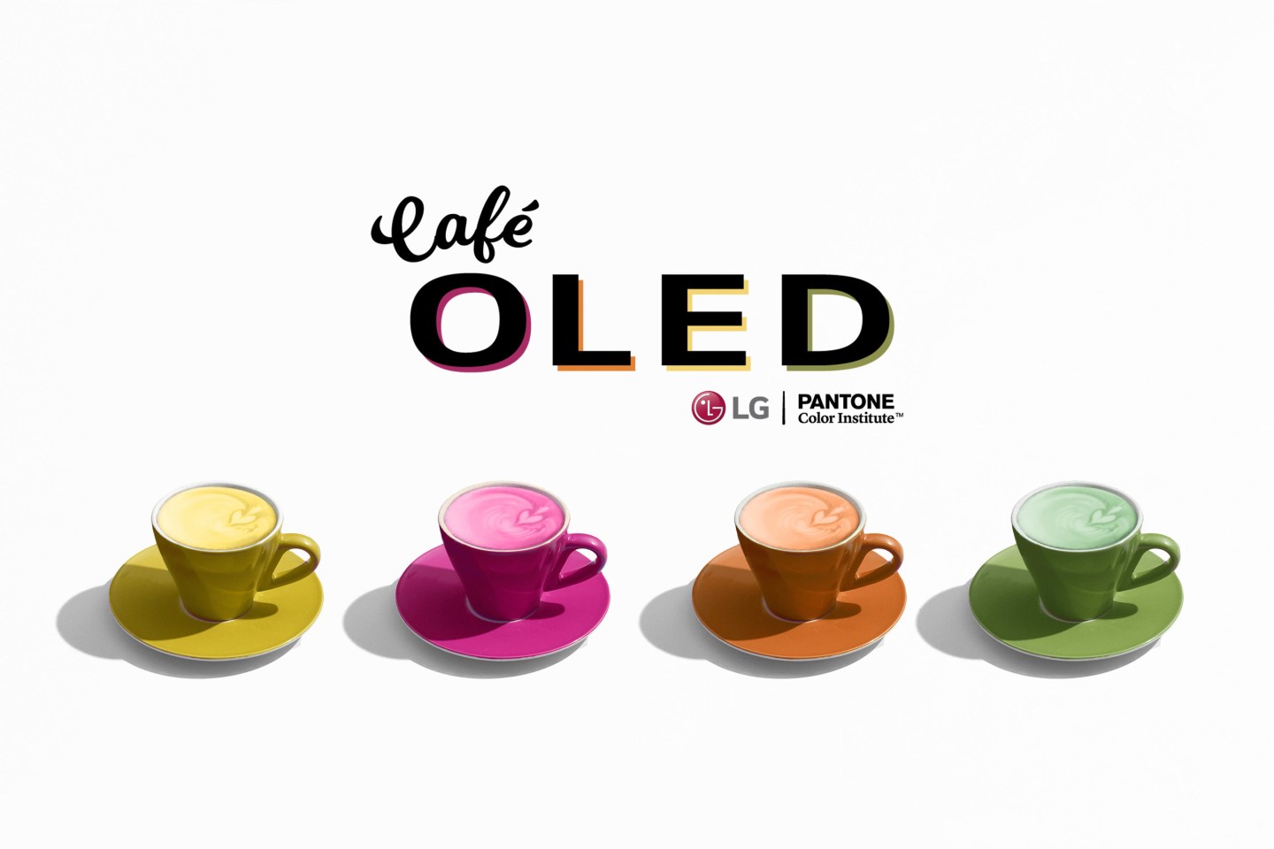 Cafe OLED is named after LG’s Organic Light-Emitting Diode TVs, which will hang on the walls showcasing colorful digital displays by multi-disciplinary illustrator and artist David McLeod, inspired by Pantone colors.