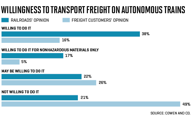 Despite the potential benefits of automation, major freight railroads declined to comment to Fortune on the issue. Union negotiations in the fall make this a sensitive time, particularly because railroads will likely propose reducing train crews to just one person from two.