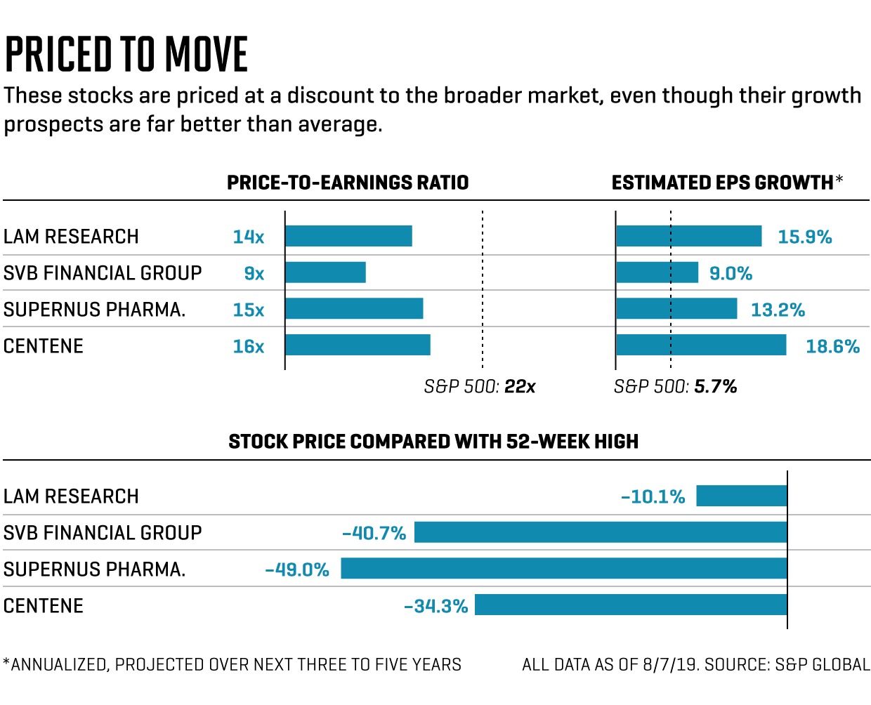 Some companies sport low valuations because of where they sit in their business cycle. Lam Research makes equipment found in many kinds of chips, including those that power iPhones and a range of artificial intelligence applications. It’s an industry that rises and falls on innovation booms and supply gluts. After stratospheric growth in its previous two fiscal years, Lam’s sales fell 13% in its fiscal 2019, which ended June 30. But its stock has begun to rally as investors anticipate the next rebound. Prices for NAND memory chips, which account for nearly half of Lam’s revenues, have risen over the past month for the first time since 2017. “It’s a good sign,” says KeyBanc Capital Markets analyst Weston Twigg, who forecasts a 12% rise in revenues for Lam in 2020.