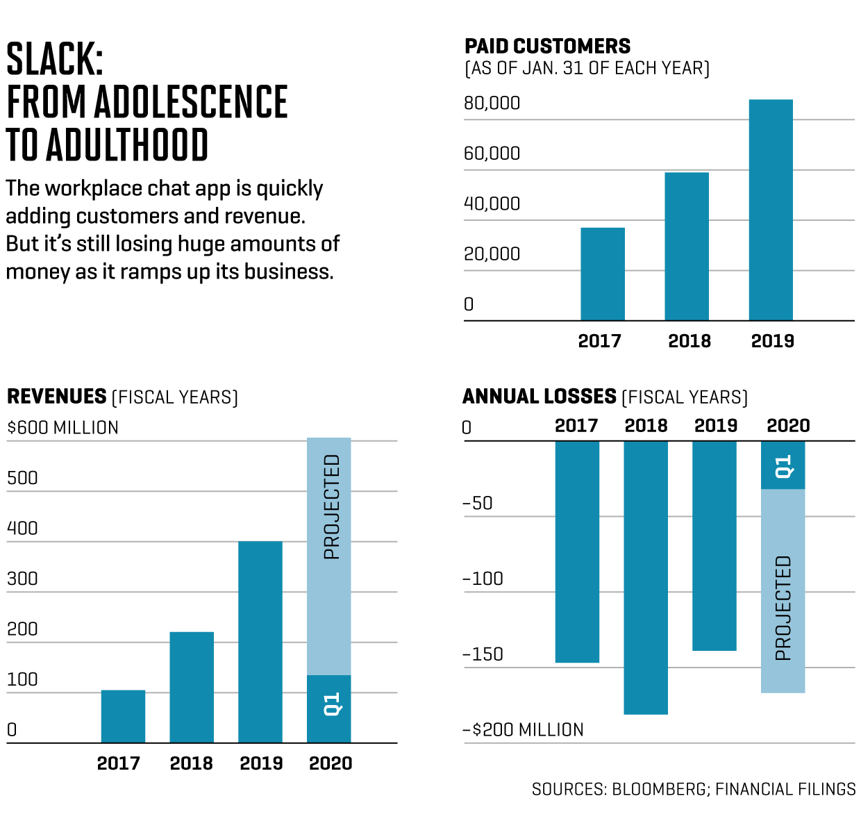 While Microsoft is a highly profitable machine that can easily plow cash into improving and promoting Teams, Slack is losing money. It hemorrhaged $139 million in its latest fiscal year on $400 million in revenue. But here’s the good news for Slack: Its roster of paying customers was up nearly 50% during that period compared with the year before, a growth rate that many other enterprise tech players, large and small, would envy. That kind of momentum is Slack’s ticket to achieving profitability, assuming it can continue at a similar pace.